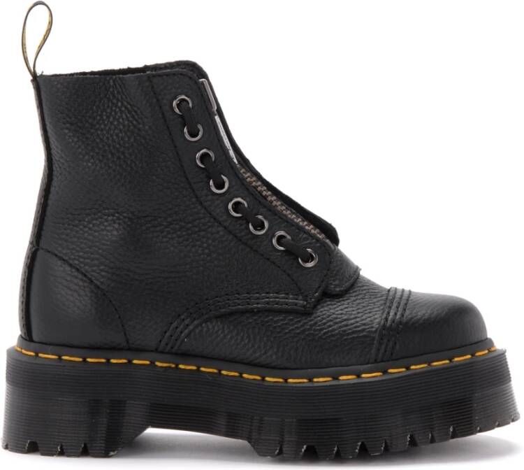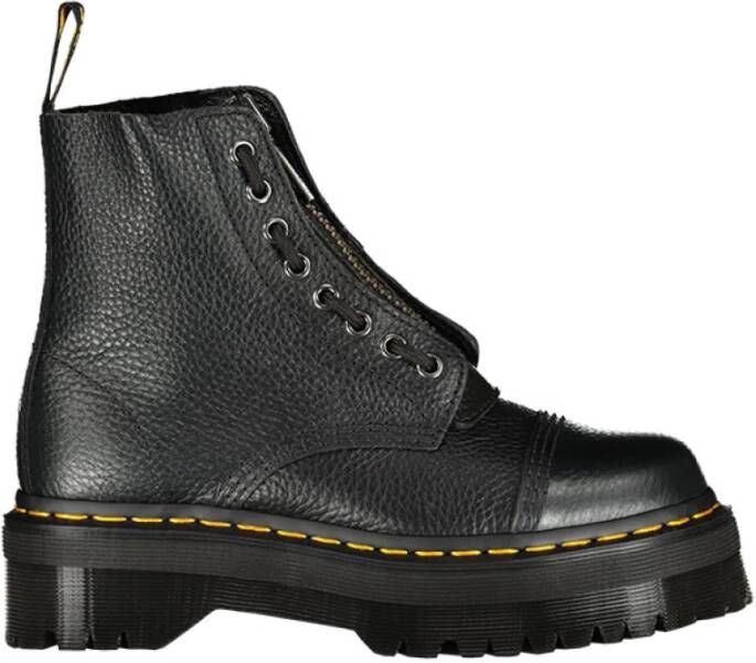 Martens Enkellaarsjes Zwart DamesDr. Martens Sinclair Combat Boot in zwart gehamerd leer met een grote geregistreerde zool. Contrasterende gele stiksels op het enige lichtgewicht platform in rubber en EVA van ongeveer 1,5 cm Airwair ™ 3 cm niet-slip rubberzool Deze beschrijving is automatisch vertaald.