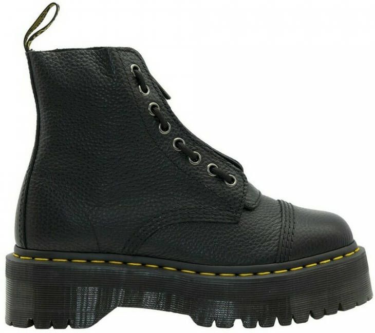 Zwarte inclair plateaulaarzen van Dr. De laarzen hebben een afneembare tong met een ritssluiting. Zwarte schoenveters met 8 oogjes aan elke kant, zwart en gele hiellus en iconische gele weltstiksels. Platform hoogte: 380 mm Maat pasvorm: True to size. Product Style ID: 22564001 Details: Type: hoge sneakers Hak breedte: sleehakken Hakken hoogte: hakken Kleur(en): grijs Stijl: punk Gelegenheid: sport, vrije tijd Deze beschrijving is automatisch vertaald.