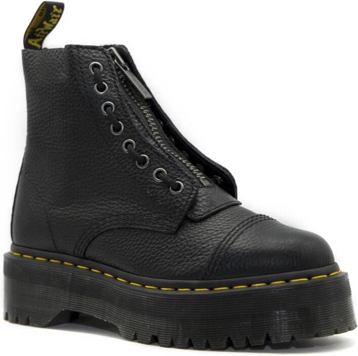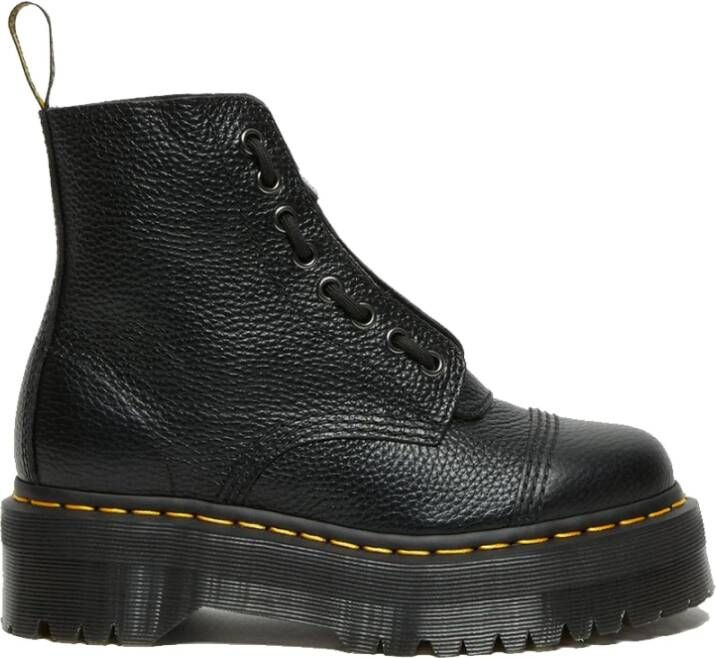 Deze beschrijving is automatisch vertaald: Zwarte 'Sinclair' platform laarzen van Dr. Martens. Ze zijn gemaakt van zacht Milled Nappa leer. De laarzen hebben een uitneembare tong met een ritssluiting. Zwarte schoenveters met 8 oogjes aan elke kant, zwart en gele hiel-lus en iconische gele welt stiksels. Oversized Quad-platformzool. Ronde teen. Zilverkleurige metalen hardware. Platform hoogte: 380 mm Maat & pasvorm: True to size. Wij raden u aan uw standaard maat te nemen. Materiaal: Bovenwerk: 100% Leer; Binnenwerk: 60% Leer, 40% Textiel; Zool: 100% PVC Wasvoorschriften: Afnemen met een zachte vochtige doek. Product Style ID: 22564001.