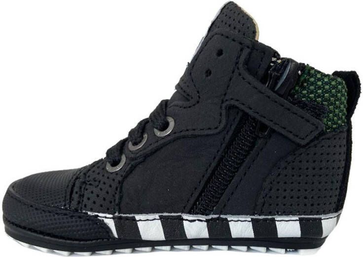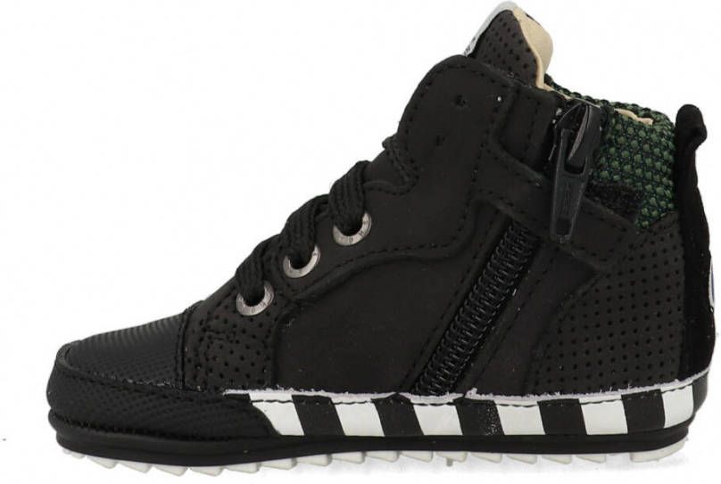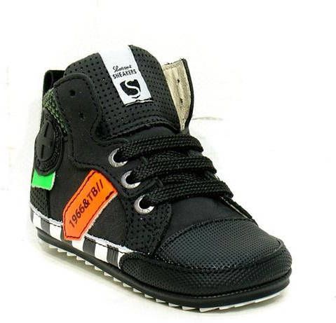 Shoesme sneakers met rits- en vetersluiting voor jongens in de kleur zwart. Deze sneakers zijn gemaakt van leer. Op de zijkant een patch en de neus heeft een rubberen shell-toe. De binnenkant is gevoerd met leer en de rubberen antislip zool is zeer soepel. Deze volwaardige schoentjes zijn zacht, soepel en voorzien van een speciaal antislip zooltje. De verstevigde hiel en het uitneembare lederen voetbed bieden steun en stabiliteit, waardoor een baby vanaf de eerste stapjes een goede houding heeft. De schoentjes zijn op de drukpunten verzacht en gefoamd, waardoor ze ook nog eens heerlijk zitten.